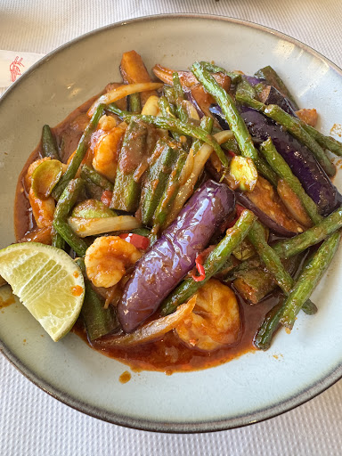 I had the Sambal Four Heavenly Kings (ÂŁ13) â a standout dish with a fiery, tangy sambal made from garlic, shrimp paste, and spices. The mix of aubergine, okra, long beans, and petai was perfectly cooked and soaked up the sauce beautifully. Full of depth and heat without being overwhelming.