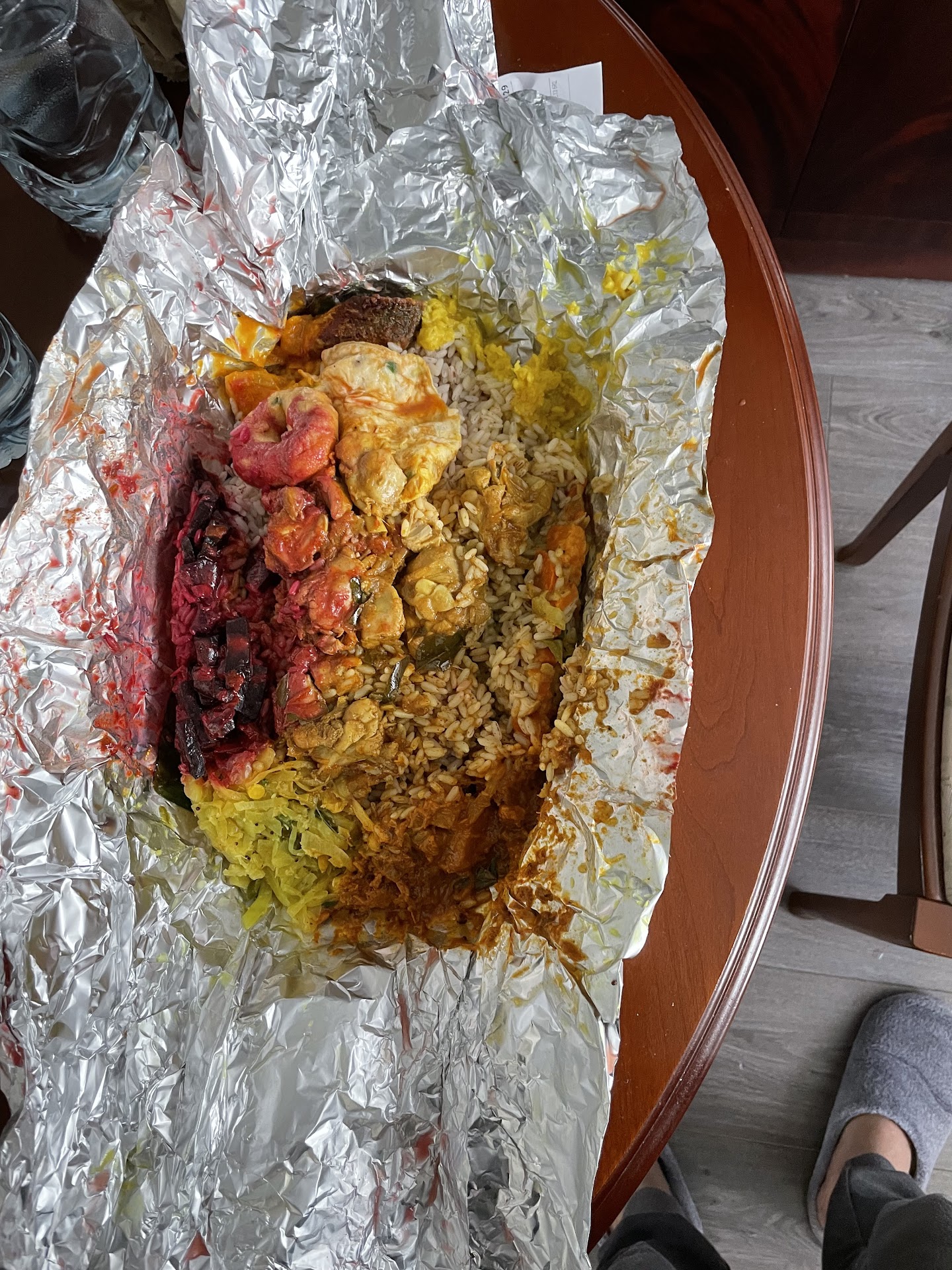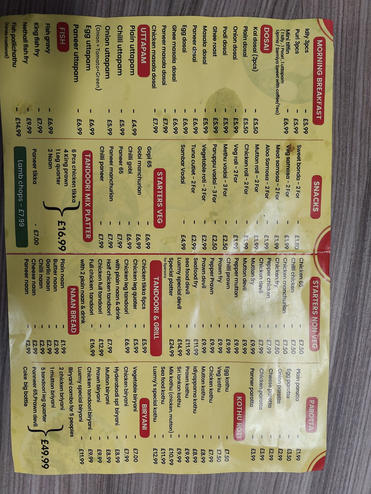 Once home I realised how much of a joke this place was, the mutton curry which was tiny little pieces of meat about 10 in total swimming around in watery sauce an cooked to death in the microwave. The chicken biryani was shocking 2 pieces of half cooked chicken legs palaced on top of hardly any plain rice, the king prawn with butter masala was a disaster must of had about 4 prawns in total amongst all the bland watery sauce. Samosa's were not fresh an was 100% package bought from probably the village market round the corner, an the naan bread I order was not naan bread at all it was so thin like a chapatti an cut into thin triangles instead of leaving it whole.