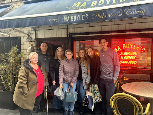 My daughter got married on Saturday and the grooms family came over from Peru (he's half Peruvian). Anyway, they organised a Sunday lunch for both families at Ma Boyle's. 26 in total - no problem! The roast dinner was one of the best I've ever had! The beef was so tender it fell apart as you touched it with your fork. Everyone I spoke to enjoyed their meal. Service was fantastic and the staff were so friendly too. A massive shout out to Rachel who was so happy, bubbly and friendly. She couldn't do enough for her customers. I was really impressed. Ma Boyle's is a hidden gem in Liverpool city centre. It's literally hidden down a little side street off Water Street, (just passed Hooters). Its a small, cozy pub restaurant with 2 levels. The only negatives from my point of view are; There is no wheelchair access. If you can't do stairs, it's not for you. The tap in the loo is stupid. You have to keep it pressed to use it so can't wash your hands properly. The door handle is missing on the inside of the toilet door. There is somewhere to open it but if you have weak wrists it'll be a challenge. Even with these faults, we'll definitely be going back! Highly recommended!!! (photo is of my family outside. It was...