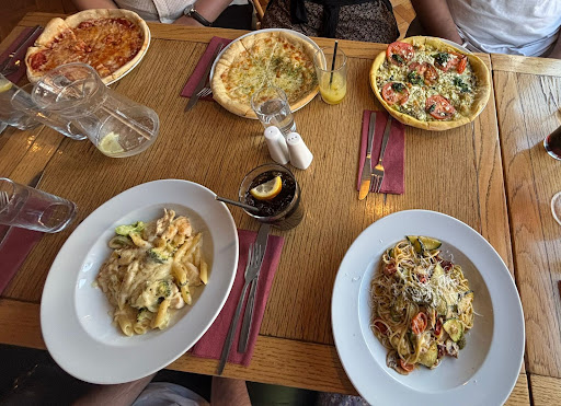Read moreWe had lovely food here but our experience was disappointing towards the end! Came as a family of 4, 2 adults + 2 children. The kids menu is good value and plenty of choice. We all had pasta and the lasagna and spaghetti bol was tasty and the portions large, plus the parmesan was freshly grated which was a big hit with my daughter! Sides of olives, garlic bread and chips were also good. The staff were attentive and accommodating up to the clearing of our plates from the main meal. Then, strangely, no-one offered us the dessert menu despite us sitting there, the kids waiting expectantly for ice cream (which I later recalled was included in the kids meal price). Several members of staff came and looked round the few tables that were in, apparently ignoring ours even though we were clearly ready for our next course or at the very least, our bill! We waited a while and then decided to go elsewhere for dessert. Started to get up, put coats on etc, no-one came over to see if we wanted the bill or anything else. Eventually ready we asked someone for the bill and went up to pay. I checked the menu at that point and realised the kids ice cream cones should have been included, had to ask for those to take with us! Not sure what happened here - why the service changed from being excellent to poor in the last 20 minutes, but the adults would have ordered desserts and maybe coffee should the menu have been offered so the restaurant...