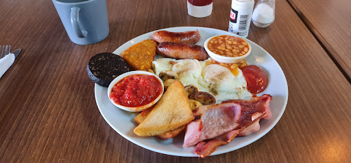 Read moreFirst time I've been in here drove past it loads of times but never had a reason to stop, so when I did have a reason to be close by you have to have a look. From the outside it look small but once inside it's surprising how spacious it is plenty of room although it was quiet when I went in, service was excellent staff were very polite and I wasn't kept waiting food was very good also the coffee, will I visit again yes would I recommend it yes although it caters mainly for the local area but if you are getting your car tyres done across the road or picking up your meat from next door go in and...