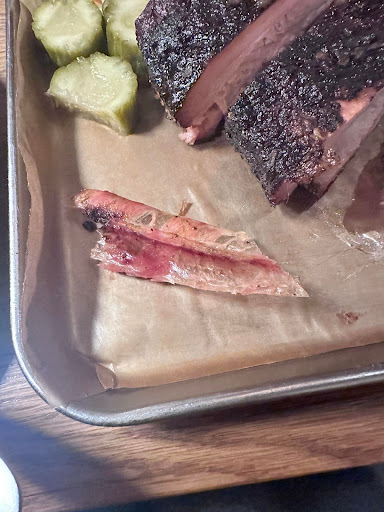 Let's break down the details of the dishes we had the misfortune of trying. The fries were one of the few items that had an ounce of seasoning, but they were also sad and soggy, as if they were cooked in cold or old oil, or sat under the hot lights for too long before being served. The brisket was a disgusting blob of insipid, unrendered, and untrimmed fat. We literally could not swallow it because it felt like we were chewing beef fat flavoured chewing gum. The flavourless St. Louis ribs, albeit tender on one side, were dry and chewy on the inner side, where the membrane that was not removed turned into a hard, unedible sheet. The chicken wings were absolutely drowning in grease - again, probably because they were fried in cold or old oil. The hot link sausage - the saving grace. It was the only item that had any resemblance of smokey flavour and proper seasoning (I can only assume because it was outsourced and not made in-house).