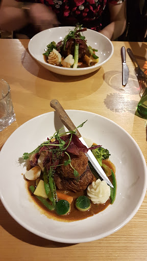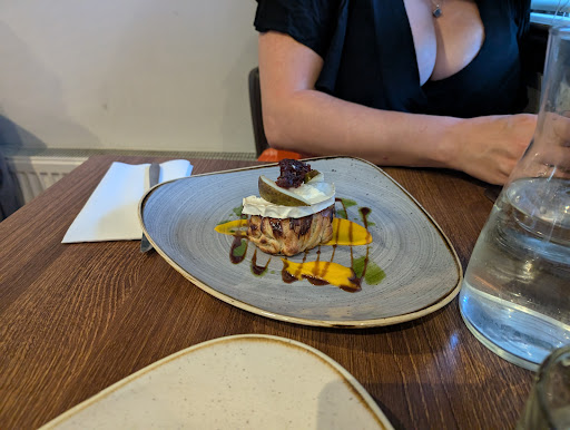 Had a fabulous starter of king scallops accompanied by a glass of prosecco and a main of beef wellington. Both courses were delicious though I did wish at the price my starter was larger. Decent wine menu and a few items at the lower price point.