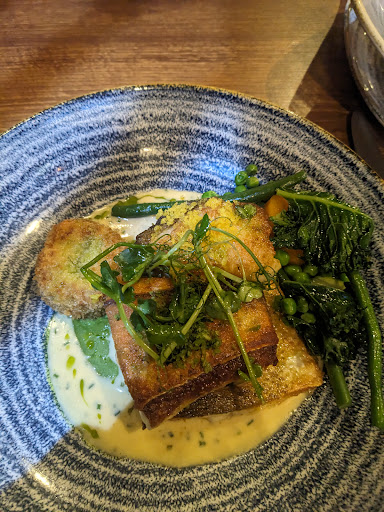 The service here is really top notch, it can occasionally be a little slow but it's friendly and attentive and that's what ultimately matters. Even the owner gets involved which is always a good sign. There's a wonderful atmosphere and the decor is more than gorgeous, but it's the food that's the star here, especially the crispy squid starter with chilli sauce and pak choi. Mouthwatering deliciousness. There's no particular food 'theme' here other than painfully hip and modern, hence why you'll find gnocchi and mushrooms accompanying turbot on the same menu, but I loved all the combinations. The portions aren't massive as you'd expect from a restaurant like this, but they're certainly...