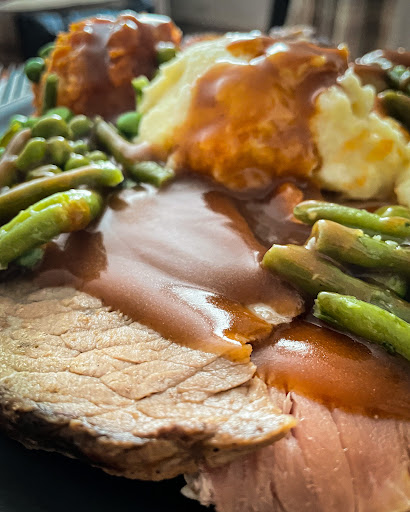 With the dinner I was sent 3 large, melt in the mouth pieces of meat (Turkey, Beef & Ham), I kid you not, they tasted fantastic. The Beef just so tender and almost melted in my mouth. Delicious. Along with a selection of green beans and peas, they sent Roast potatoes and a small Yorkshire pudding with a stuffing ball. One good size ladle of mashed potato and carrot/swede mash.