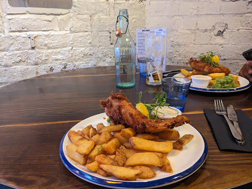 My main of fish and chips was mainly fine and the batter excellent... There were nowhere near enough mushy peas (about a table spoon)... Maybe they could swap some chips for more peas which would give the dish much more balance!...