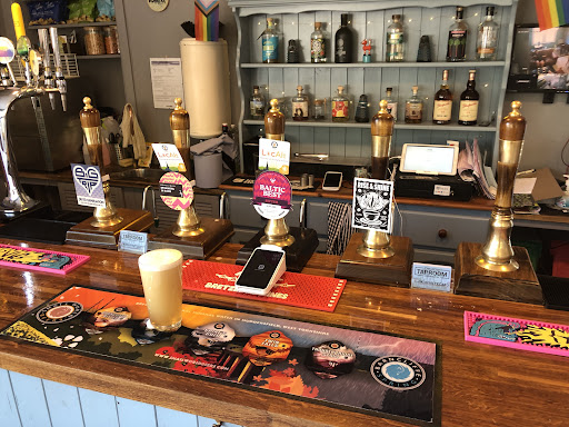 This is a pretty decent place. A changing offer of what's on tap, just a bit too pale ale heavy for us. Would be nice to see some more Amber's, reds, darks and stouts on tap. They do have a large selection in thr fridge though. Prices are a little high and seating can be difficult to come by. Nice comfy couch in the back if you are lucky. Selection of books if you want a solo drink and a few games. Bar snacks are good quality crisps and other snacks bits. They also make their own gin, not tired it yet but shows it's not just for those who...