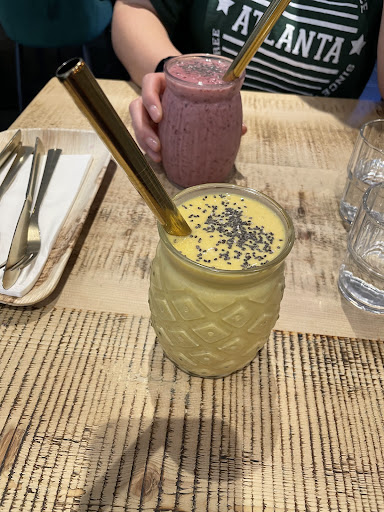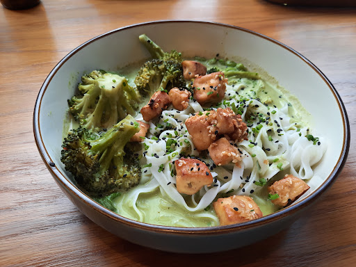 Read moreMy wife and I went here for lunch the other day. We are certainly no vegans but thought we’d give this place a try. The restaurant is attractive looking and very green. It was quite busy but they opened up seating upstairs so we managed to get a table no bother. The lady that served us was lovely and friendly. You can tell she genuinely loves her job. The menu is great. It isn’t just filled with nasty fake meat like other plant based restaurants. I went with the spud bowl which had a mixture of tasty flavours and was well presented. I usually like my baked potato cooked a little more but it was still very nice. My wife got the pancakes which she enjoyed. For sides we got salt and pepper cauliflower and potato bites. The cauliflower was lovely and soft and came with a nice dipping sauce. The potato bites were also delicious. Not too crispy and the garlic mayo was yum yum. For drinks we got a couple of smoothies. The wife got the boss berry bliss and I got sun goddess. The berry one was definitely stronger in flavour and in the end a bit much for my wife but both were tasty. To take away we got carrot cake, cinnamon bun and a white chocolate & biscoff brookie. The carrot cake was scrumptious, the brookie was devoured by the wife and the cinnamon bun was not bad, although I’ve had far better. Overall we loved our lunch here and will recommend not just to our veggie family but anyone. It was a little expensive but you get what...