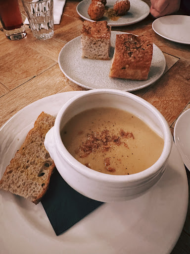 The culinary journey began with the starters, where the Rosemary and thyme focaccia with olive oil and sea salt set the stage with its aromatic and savory notes. The Tutto fa Brodo (Curried Parsnip Soup) was a revelation of warmth and spice, while the Arancini with cauliflower and Parmesan, complemented by charred spring onion dressing, displayed a harmonious marriage of flavors and textures.