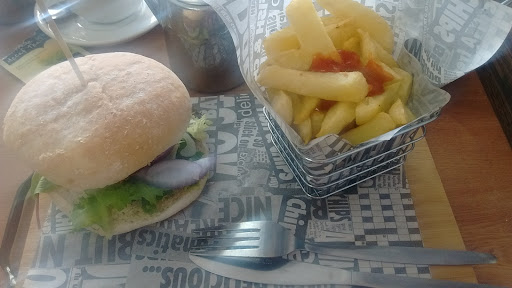 Read moreBeen here twice, the first time was a few years ago. The decor has been updated and the menu altered, but they still offer a huge range of food including gluten free and vegan options. This latest visit was on an extremely hot day and the cafe was packed. The staff did incredibly well considering and the service was quick and the food was lovely and hot. Sadly our vegan burgers were delivered on a wooden board with the chips in a metal basket - I realise this seems to be popular but it sort of takes the comfort/relaxing element out of eating in a cafe. The young man who served us was friendly but didn't seem to know the menu very well, I assume he was new. Offer several vegan dessert choices which is fantastic! We had the ice cream sundae. The toilets could do with updating but they are perfectly functional. There was no disabled facilities and the tables were positioned very close together so moving a wheelchair inside would...