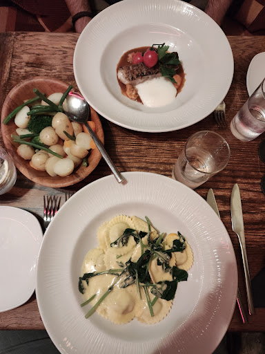 My starter of mussels were bland, the sauce was not homemade. my husbands starter was squid, the portion was very small and served oddly with creamy mint sauce which spoiled it. My lobster was nice. (which it should have been for a £20 supplement) but not the best I’ve ever had and overpowered by garlic sauce and not garlic butter. My husbands fillet was awful and bland. Served in a peppercorn sauce that was too peppery and big lumps of cold blue cheese on top of it. He’s glad in hindsight he didn’t get the Châteaubriand at 16oz 😂 For an expensive restaurant you expect seasoned/sautéed vegetables. Instead carrots, brocolli, cauliflower and new potatoes were overboiled and unseasoned and flavourless plonked in the middle between us.
