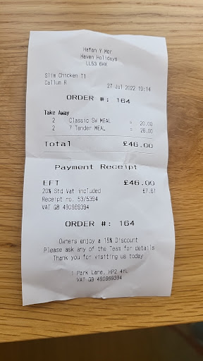 Read moreHad a great visit to Slim Chickens whilst staying at Haven but be aware that it's very expensive for a fast food place!!! We both had a meal and then one side between us and it came to about £36. When you first select a meal from the menu it seems reasonable, and as you go through and select your sides and sauces these items are all added on at an additional cost rather than being included in the cost of your meal. I would say it was probably the best meal we had whilst we stayed at Haven though and really good sized portions. The portion size of the fried pickles was absolutely massive and we didn't even eat half of them! Overall a great visit but do be wary of the sneaky...