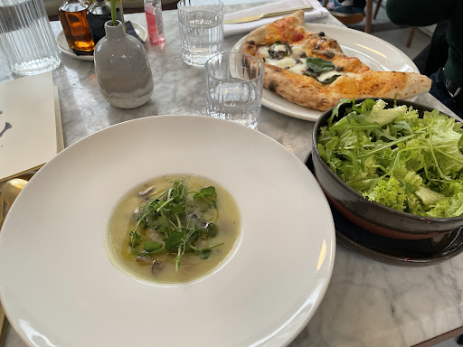 Read moreThis restaurant has great atmosphere which makes it all the more disappointing to have to leave a negative review. In terms of positives, friendly staff and unusually pleasant atmosphere and dĂ©cor especially in the dim lit basement with its beautiful marble tables, discreet lighting and cosy booths. Another big plus is the fact that the place was full of Italians, which is always a hidden bonus to spot when judging authenticity of Italian restaurants. However I cannot excuse the value and quality of the food presented. We ordered a salad which looked like a masterpiece on paper yet turned out to be disgustingly bitter and off-putting thanks to it being almost completely dry (a drop of honey in a large bowl) and using a bitter variety of lettuce, plenty of bitter orange zest (no orange juice as advertised) for flavour, extremely unripe (mostly made of unripe white flesh and hence bitter) figs, and nuts. It felt like someone just forgot the dressing and tried to make the salad as unpleasant as possible. The main course unfortunately only re-inforced this, with the pizza being made with obviously fresh ingredients but unfortunately, again, very salty and bitter, smelling almost like smoked food with an unpleasant aftertaste. Apparently sea salt is used for the dough, which sounds appealing for marketing purposes but in the presence of authentic cheese and other toppings makes the food unbearable to eat, almost made me want to puke which is unacceptable for the price point of this restaurant. It was so bitter in fact that my partnerâs pasta tasted like candy in comparison. The pasta was excellent and balanced, but the portion was definitely extremely small. All in all the exceptional atmosphere and service was hurt by the dishes lacking some common food sense and leaving an unbearable bitter aftertaste. The cannoli were quality, absolutely amazing, but not likely...