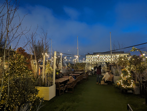 There’s something effortlessly cool about this place. The mix of open sky (thanks to the retractable roof) and moody evening lighting gives it a laid-back but stylish feel. It’s the kind of spot where you could show up in jeans and still feel like you’re somewhere special. I went just as the sun was starting to set, and watching the sky change colors over the city with a drink in hand? Absolute magic.