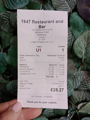 Despite these points, 1947 is doing a great job. If the menu accomodates more naan options for vegans and is shifted to a more savoury palette, I...