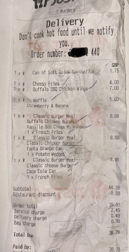 Read moreThis used to be a nice place to order food from but it has gone rapidly down hill. The portion of cheesy chips i ordered was half the size of the one i ordered only a week or so ago. All of our Burgers had soggy no saturated buns making them practically inedible. I used to put up with the fact that they forget atleast 1 item that you order everytime you order something as the food was once good but i will not be using the place ever again now and i would advise anyone to steer well clear. Unfortunately this once nice place to eat has become yet another over priced dive on the New Cross road with staff who couldn't care less about what they serve and portion sizes that are so inconsistent that is plain to see they make them up as they go along. It has become quite obvious that cooking and serving food is not actually the priority of this establishment so one can only assume it is there for other reasons as some of its neighbours are. Bitterly...