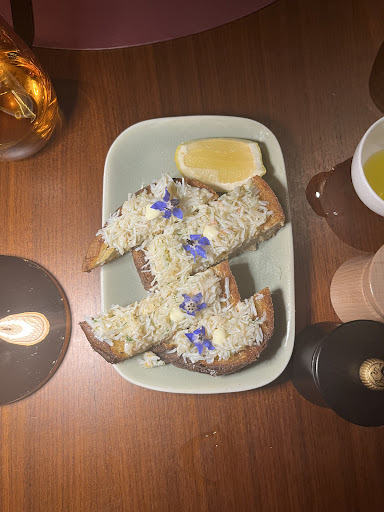 ● Crab toast: crab was fresh but its delicate taste is absolutely ruined by salty mayo, the toast itself is soaked in olive oil, every bite delivers a gagging mouthful of oil and mayo taste. The crab deserves better and this waste is appalling ● Pretzel crusted calamari: served cold, oil coming out of the calamari, just seemed it was reheated and then left for a while, because the crust was more like a sprinkle of soft crumbs. ● grilled octopus: the octopus was decent, but why oh why was it served with roast potatoes and the whole thing was yet again greasy and without a hint of anything fresh or green or just aaaaanything to cleanse the palate or balance the dish out?! ● crispy dover sole tacos: what I expected - lovely piece of dover sole on a bed of crispy vegetables and a drizzling of some fancy sauce; what I got - yet another oil soaked dish of a tiny piece of some fish barely visible through a thick cluster of deep fried batter and a few cabbage leaves that looked more torn (like the ones you see in a rabbit's cage) than delicately chopped let's say, and maybe somewhere in between there was an apple slice but I have not noticed it or tasted it. All of that is placed inside a plain wrap that tastes of nothing whatsoever, like the one you'd get at your local supermarket.