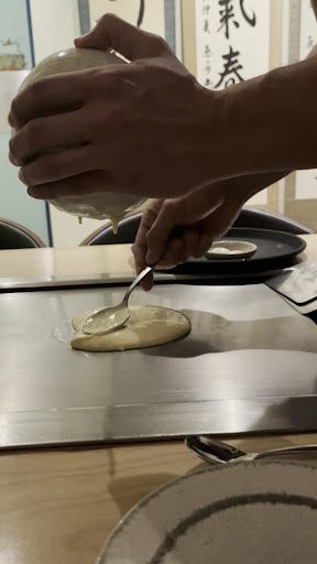 Read morequick premise: this is not a typical japanese restaurant, you won't find sushi or many other staples. this is one of those places where they specialize in doing only one thing and doing it extremely well (although they do have some other things on the menu). in this case, the one thing is okonomiyaki, a pancake/omelette made with a number of fillings and ingredients mixed with cabbage, scallion, egg and flour and cooked on a hot plate on your table right before your very eyes. the food is excellent, i had an okonomiyaki with natto and konjac, and another with a mix including konjac, lotus root, pork and beef (the latter was tender and juicy). do not underestimate the size of each okonomiyaki: a super deluxe alone is enough to fill a regular belly to the brim! they also had umeboshi onigiri which i was very happy to peruse as i absolutely love umeboshi. i tried the dried fish flakes and didn't mind them, and i generally utterly detest fish so this is a memorable occurence. service: if i could exceed the 5 star rating i would, absolutely on the top 3 of best services i ever had in a place (probably only on par with an anonymous and empty pizza restaurant in georgia, usa). joel was both our server and our chef as he cooked our okonomiyaki all the while discussing their origin (they're a typical dish from the kansai region) and making pleasant conversation. the rest of the staff has been extremely pleasant as well. also of note a great consideration for allergies and preferences, joel asked us beforehand if it was all right to use the same instrument set for all the okonomiyaki (it was fine in our case but we appreciated the gesture a lot). it's unfortunately a bit on the expensive side but all in all we still think the quality of it all was worth the price. bottom line: absolutely consider visiting, try to reserve in advance if you can as the place is a bit small and quite popular at the same time. we'll definitely return on one of our coming...