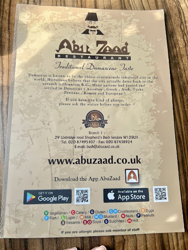 Read moreDiscover the heart and soul of Damascus right here in London at Abu Zaad. The decor and atmosphere will whisk you away to the ancient streets of Old Damascus. Here are my top recommendations that made my visit to Abu Zaad truly memorable: 🍽️ Cold Starters: Moutabal: Silky, luscious, and absolutely delightful! 😋 Baba Ganouj: Rich, smoky, and utterly irresistible! 🥰 Warak Inab: Flavor-packed little bundles of joy 🌿 🔥 Hot Starters: Kibbeh Shamia: Crispy on the outside, tender on the inside. A must-try! 🤤 BBQ Kibbeh: Perfectly grilled, these are a smoky treat! 🔥 Fattet Makdous: A wonderful mix of flavors in every bite! 😍 Foul Moudammas: The ultimate comfort food! 🫘 Fried Cheese, Chicken, and Spinach Pastries: A trio of crunchy, cheesy, and savory delights! 🧀🍗🌱 🍛 Main Dishes: Makloba Shish Bunak: A harmonious blend of flavors that will tantalize your taste buds! 🎶 Kibbeh Labanyeh: A comforting dish that warms the heart! ❤️ 🍲 Moroccan Specialties: Tajin (Lamb) with Couscous: Tender lamb paired with fluffy couscous, a perfect combination! 🐑🍚 🍖 BBQ: Grilled Lamb Fillet: Juicy, succulent, and grilled to perfection! 🍖 🐟 Seafood: Sea Bass: Fresh, flaky, and fabulous! 🐟 🍰 Desserts: Baklawa: Sweet, nutty, and simply divine! 🍯 Konafa: A cheesy, syrupy treat that you can’t resist! 🧀🍯 🥤 Beverages: Fresh Juices: Refreshing and invigorating! 🥕🍏🍋🌿 Ayran: The ideal companion to your main dishes! 🥛 Arabic Coffee: Finish your meal with a strong, aromatic touch! ☕️ 👨🍳 Friendly and Professional Staff: The team is always ready to offer the best recommendations with a smile! 😊 For groups, Abu Zaad offers an impressive lamb with rice platter, perfect for sharing and creating a festive atmosphere. Prices are: Whole half lamb with starters: £250 (without starters: £190) Whole lamb with starters: £400 (without starters: £320) Come and experience the magic of Abu Zaad, where every meal is a celebration of authentic...