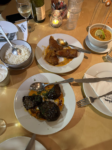 I was there with my partner just yesterday evening. We arrived around 7pm, we were left standing for about 10 minutes and literally ignored by staff before being told that the first table is available after 8pm, we were hungry but the food looked delicious so we decided to go for a walk and come back at 8pm. We got back to the restaurant just after 8pm, again we were ignored for a good 15 minutes. When we were talked to we were told will be available soon. Our order was taken while we were standing and we kept waiting for a total of 45 minutes after our booking time before being cramped next to another couple around a table that definitely does not take food for 4 people. I talked to the waitress and said that we have been standing for more than 45 minutes after our rereservation time, she apologized and she asked for our order, I said we ordered 25 minutes ago. She said maybe our order is late because they are out of one of the dishes we ordered, we were straving so we changed that dish to get our food faster. The dishes are pre-prepared and are merely heated in a microwave before serving so we expected our food in around 5 minutes. It took more than another 35 minutes. We literally saw people ordering a good half an hour after us being served their food, eating and leave while we are waiting for our food. In the meantime more and more people were standing in the space next to us to the point our neighbors dishes starting being pushed off the table and falling on the ground. We ate whatever food was served to us quickly as we were both starving, bread never came, the waitress apologized again saying they have a problem with the oven, we asked for some more rice so we can eat the sauce dishes we ordered, it took forever again. Our bread never arrived nor our drinks. We paid and left, I was angry at the young waitress and felt bad for it, I never get angry at waiters, I know their job is tough. But we have mistreated 4 or 5 times without anything being done by the staff except empty apologies. This is the worst service I had in a London restaurant in 15 years of life in this city. The single star is because food we had did taste good. And it is generous. The staff ruined...