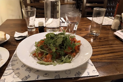 Read moreOk I'll start with saying that the restaurant looked lovely, tidy, clean, loved the decor and the old sewing machines around the place. I went there with my brother and cousin for lunch on a week day. I was a bit late so i entered the restaurant on my own and one of the waiters helped me finding the table. I was asked straight away if I wanted a drink, I ordered my drink and the food altogether. The antipasto came but they forgot to bring my drink, so I asked for my drink again and after 2 mins they brought it to me. My brother ordered mussels with tomato and garlic sauce. He didn't seem very happy with it, so I tasted it and all I could taste was mussels and tomato juice. The flavours weren't blending together. The tomato 'sauce' was more like a juice and couldn't taste any garlic or any other spice. So not very happy about that. When it was time for dessert we asked one of the waiters if the profitterols were fresh (sometimes in restaurants they just give you the frozen ones in a cup) and the waiter laughed and said 'Sorry, we don't work during the night'. We were very disappointed by that answer, so we ended up not ordering dessert but just a cup of coffee. The attitude of that person kind of ruined the end of the meal. Customer service is not great. Such a shame for such a lovely place. I hope it...