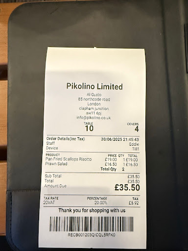 We came to Augusto (Northcote Road) for dinner. Rodrigo took our order and everything seemed fine at first. But we ended up waiting 35–40 minutes with no food. Eventually, Rodrigo came back and told us the scallop dish we ordered wasn’t available. I said, “It’s been nearly 40 minutes — how are you only finding that out now?” He was apologetic and explained the kitchen only just told him. Fair enough. Mistakes happen.