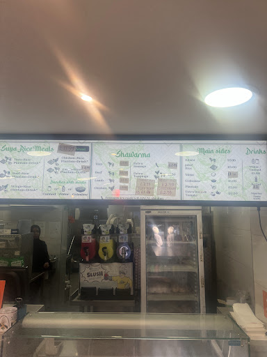 Read moreWoooow…. So my bus was due in 5 mins and I was hungry and needed something quickly to eat whilst on the bus so I popped in and was greeted by a nicely mannered lady. Now… I have been here before and had a Chicken suya and jellof and it was delicious!!! After a moment I ordered a chicken tozo shawarma wrap with plantain.. thank the lord I ordered with plantain lol I told the nice lady my bus was coming and it it’ll be ready, she said yes and got to it. She wrapped it up just as my bus came and I was delighted and thanked her quickly. Once I sat down and bit in it this wrap I was like.. “WOOOOOOW… 😁THIS IS FIRE 🔥” and I bit again into some plantain and it was AMAZINGLY fiery and sweet!!! Definitely 10/10!!! I’d like to thank the lady who served me, it was delicious!!! Soooo flavourful and wrapped well!!!...
