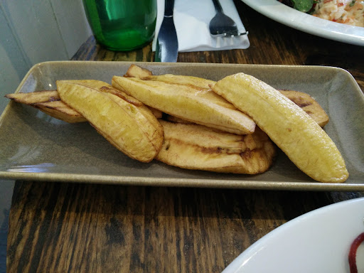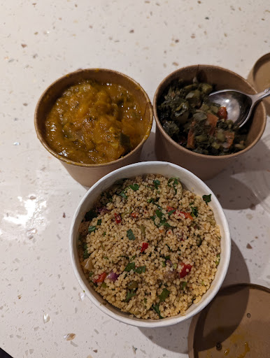 Menus are written on boards above and below the counter and these are prone to rotation. However, if you're lucky, get some ackee and mushroom complemented with quinoa. You'll have a green salad and a green chutney as part of your plate. I'd also recommend some stodge to fill you up; for me the fried plantain beat the dumpling. This was my first experience of Ital food and it was very tasty. It does come with a bit of kick in terms of spiciness, so do mention this when you're ordering if you like things on the mild side.