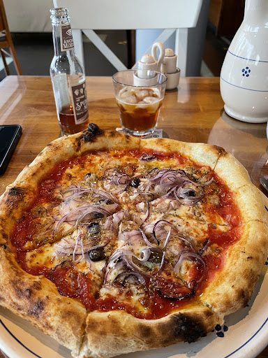 We were staying up the road at the Premier Inn before heading to a wedding the next day. On doing a little Google search of restaurants in the area I found this wonderful little place. We purely went there off the back of the photos of the pizzasā¦.they look amazing. On arrival the hostess was so friendly, warm and welcoming. The few customers that were in there already were obviously locals / regulars and she had the most wondrous rapport with them, especially the kids. When ordering we were given water for the table and I ordered a fantastic IPA. My wife had a chicken salad and I had a pizza with Italian sausage. On arrival the food did not disappoint. My wife loved her salad, the chicken was beautiful, and my pizzaā¦.well, definitely in the top 5 of best pizzas Iāve ever hadā¦.and trust me, Iām a big pizza fan so this is no mean feat. Incredible. I wanted to post a photo to accompany this review, but by the time I remembered to take it the pizza was long gone!