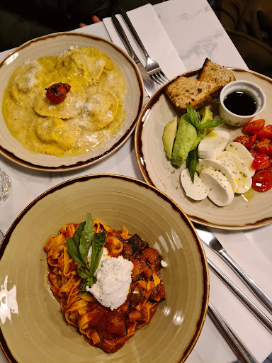 The pizzas were bland - margarita, calzone and something with a spicy topping tasted of not very much frankly. The dough wasn't all the way cooked and left one of our party with an upset stomach. The tomato sauce that is provided at the side of the calzone and the starters is the tomato base used on the pizzas and didn't add much to anything it was provided with.