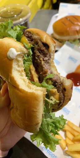 Ā Ā Ā Read moreI was really on the fence to leave a review here. I noted queue of people and was wondering what is the fuss about. So I had to have a go before going for larger orders. I tried Amigos burger meal. The staff were very friendly and helpful actually. Waited about 10min my order was ready, served in nice tray with tissue and sauces etc. I went for 6oz which was a reasonable size and was enough for me. The first bite said this is good but perhaps not good enough to my expectation. Something about the texture of the meat was not right. I say it was just about avarage; you could taste the sauce more than than the taste of good quality meat and that was lacking. I really struggled to finish the burger and usually that never ever happen to me when comes to eating burgers. The fries was OK but from experice told me the oil needed changing, didn't taste right, and not sure if they cook other things in that oil!. In fairness I them i still say good value for money and perhaps good for students on the budget; but if you are after a high quality experience this is certainly not the place to be. I will not go back there again, in terms of rating I say it was 5/6 out of 10 not more. Their issue is quality of meat is not good enough, and if that improves they may improve their ratings too. I am sure people are willing to pay more for better quality. I struggled to digest it properly even after 3 hours. Usually this never happen to me. I still say people should have a go but if you are after a high quality burger this is not the place. Nothing special at all, and glad I didn't go...