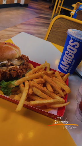 Overall, as a restaurant, Amigos is a little bit overrated; but they have awesome burgers that never disappoint. There are many different types of milkshakes to choose from, which is great. However, one thing that Amigos could work on is their service. The workers, who were in the kitchen, were taking too long preparing other people's orders. My order number was 678; and I believe that some of the people who ordered later got their food quicker than I did. Fortunately, I didn't get mine messed up. If I noticed that Amigos messed up my order at that time, I would've given them 2 or 3 stars! đđœ