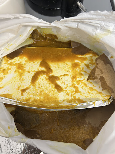 We chose this place because it's conveniently located right across the street from our home, and the prices were reasonable. We received a large quantity of food (4 gravy dishes, rice and rotis) for £23, but it has been sitting in our refrigerator for the past 20 hours, and we don't feel like eating it. However, we also feel guilty about throwing it away.