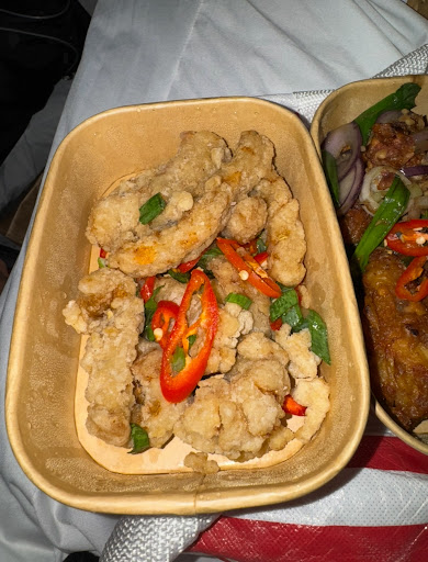 The sweet chili chicken was another standout. The chicken was tender, coated in a sticky-sweet glaze with just the right hint of spice. Super addictive. The salt and pepper calamari were good, obviously not crispy anymore because it was delivered, which was expected but overall still tasty!