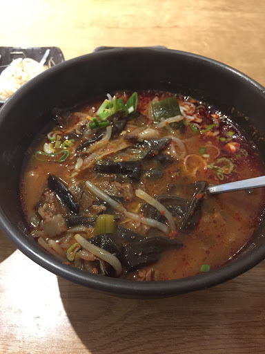 Read moreThe kimchi pancake doesn't have enough kimchi in it so it tastes bland. Giving soy sauce doesn't cover up the fact that the pancake is mostly batter. The food is clearly made by someone who has no basics in cooking. Ingredients such as crab, which should be one of the main ingredients to give the soup flavour, came out frozen, whereas ingredients that should be cooked quickly came out defrosted, meaning that by the time the jeongol is fully cooked, all the seafood is tough but the flavour from the crab is barely present. Not sure why you would put the mooli around the edges. It tastes longer than the other ingredients to cook and should be placed at the bottom or fully submerged in the soup. Preferrably, if you were to make a little effort, it should be boiled prior to serving as part of making the soup and served already soft. There are things you expect from food that is called jjampong, which is (i) chili oil (ii) soup flavoured with the taste of spring onion, chili powder and soy sauce, and (iii) noodles. So when you serve a jjampong jeongol with none of these things, I'm not sure how it's any different from a haemul jeongol. Check your burners. We've had ours changed twice.