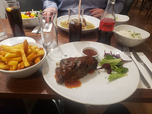 We didn't get all the sides we ordered - despite asking for them, we only got some more, not all. We had to ask for one of the mains because they only served 6 out of the 7 of us, and they did the same with the desserts- only served 6 out of the 7 people and we had to go and get a waiter to bring the other one. The desserts were not hot - we sent the sticky toffee pudding sauce back to be reheated and then had to ask for it because they didn't bother to bring it back. The plum crumble was a small amount of plum covered in what can only be described as a mountain of sand. Much too dry and badly made.