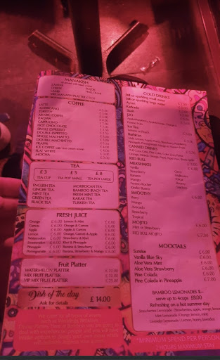We ended up with a bill of £250 for six shishas (as there was no space anywhere to have more), some drinks, and fruit bowls, only to be hit with an outrageous £490 charge for not hitting the £35 pp minimum spend. No alcohol is served however pimping out women is permissible by the owners standard…?