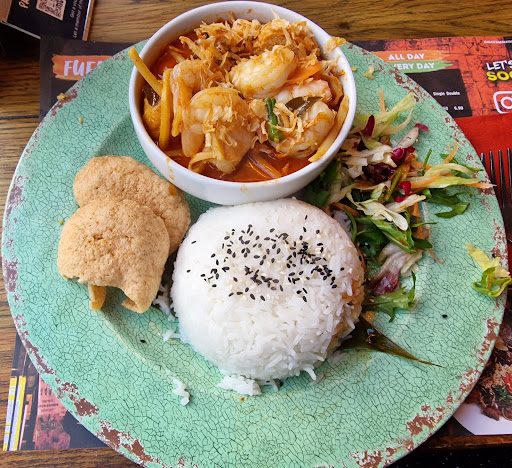 Read moreI had a good experience. The restaurant is really small and very cramped. Strange layout. Also chilly. Nice Pan Asian menu. There is an adequate choice of options for those that follow a vegan or vegetarian diet. Having said this, the menu was not as extensive as you see on their website or at bigger branches. Service was good. Staff were pleasant and friendly. I had the Malaysian prawn kari with coconut milk. Basically, tiger prawns gently cooked with aubergine, tofu and bamboo shoots in a traditional Malaysian blended coconut based curry sauce. All curries come with with jasmine rice, house salad and a few prawn crackers. Delicious. Well presented, piping hot and so tasty and comforting on a chilly evening. Some reviewers have commented on portion size but I thought it was very generous and satisfying. There were a lot of prawns as well in the kari. The kari was full of flavour and really tasty. The salad had a nice dressing on. Not too pricey. Food comes out quickly after ordering. If it wasn't for the cramped restaurant, having to eat with my jacket on as it was freezing and cleanliness (floors needed a sweep), would have given this a 5 rating. I would...