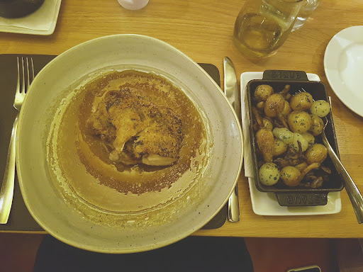 Read moreUsually my fail safe favourite restaurant. The food is un-fault able, the service is great and the place has a nice ambience and is always busy. This time, the main course took SO long to come out, and they were apologetic but they didn't offer a coffee on the house or anything, and the second drink we ordered was forgotten, it's really not the service I expect from somewhere like this. The starter I had was fish soup, which was pretty average, but that's preference as I didn't like the tomato/saffron sort of combination. My boyfriend had a crispy egg with asparagus type thing, it was basically a scotch egg. So that wasn't great. My main was amazing, I had sea bass and it looked so pretty I didn't want to eat it! The steak sort of speaks for itself but they could have jazzed it up a bit, it just came with a salad. Desert was the best part, an amazing sugar snow and limoncello ice cream and meringue creation, and we had the royal as well which was like a giant chocolate and also looked great. I know the burgers are amazing there too. Overall, not the experience I expected or am used to from them. Not 10/10 at all this time around I'm afraid.