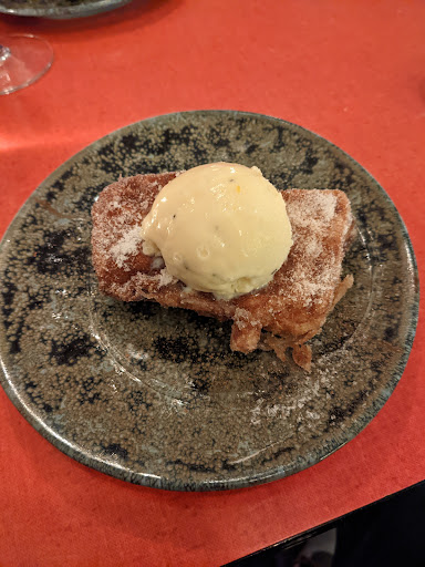 Of course there was dessert. Bread pudding with orange rosemary ice cream really caught my attention, such an interesting combination. While the ice cream was not particularly creamy, the flavors worked very well. The bread pudding wasn't really bread pudding, where it was mushy. It was more like a French Toast, coated with cinnamon sugar. Perfect ending...