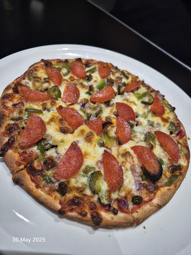 Simple pizzeria with floor-to-ceiling windows, serving stone-baked pizzas, plus pasta and salads.