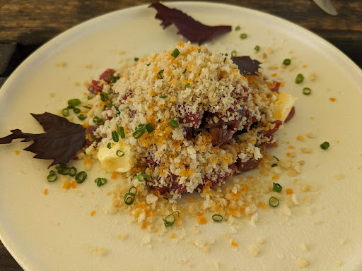 Then came the appetizer. Beef tartare has small pieces of beef buried in crumble, beef was not very fresh, and the sauce was way too salty. My friends had fried fish which they also found too salty.