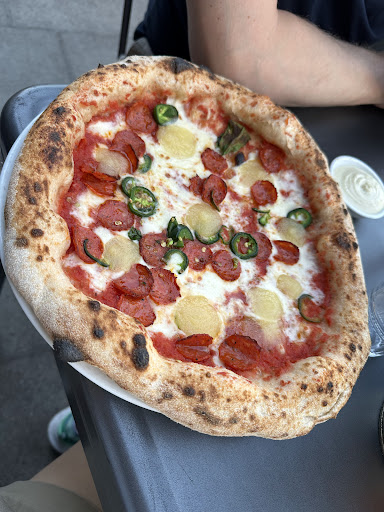 Read moreThere are many, many pizza places, of course, but Base Face Pizza very definitely merits particular attention. This newly opened restaurant is smallish, but light and airy, with lively green paint providing added freshness. Pizzas (sourdough, so nicely hitting the zeitgeist) range from the traditional Margherita with a range of toppings (you choose) to some unusual specials - I had 'Sausage and Chilli' (deliciously intense) and pinched a slice of 'British Blues' (a variety of cheeses, honey, walnuts and balsamic spiral - amazing) from a generous dinner companion. Other choices looked similarly enterprising and toothsome. Our party of six started with shared 'Bites' - the charcuterie and buratta were particularly memorable - and a couple of bottles of excellent wine; the list is short but such is the quality, no one is likely to complain, particularly as prices are so reasonable (that goes for the pizzas also). I finished with a Bears' Margherita Ice Cream (with basil and tomato jam) - this sounds weird but was sensationally good. Service was swift and charming (thank you Natalia) and the small open kitchen meant we could watch owner and pizza chef Tim Thornton at work. Tim is an eminent Jazz bassist when not cooking and his restaurant's name reflects this dual professional identity. All in all, this small gem deserves every success and I am already looking forward to my early return....