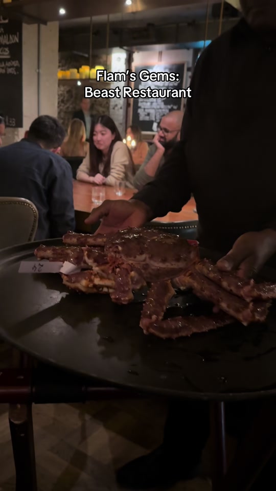 Read moreThis place was an ultimate experience in itself! Upon entering you're greeted by the beast itself, walking down to the restaurant we are greeted by large tanks of Norwegian King Crabs and cured beef meat. There are 3 long tables instead of individual tables which almost felt like something out of Harry Potter. We went for the ribeye steak from Nebraska, Norwegian King Crab, truffle chips and plain chips and bone marrow. Wow I can't even begin to describe the steak. It was just so tender, juicy and sweet!! This is honestly the best steak I've tried so far and I have tried many! The steak came with I think mushroom sauce/gravy? Oh gosh that went so well with the steak but even without it the steak was glorious already. The truffle chips..wow that was out of this world!!! My mum always went about how she always wanted to try truffle mushroom but I never understood the hype around it until I have tried these truffle chips. It is a godsend!!!!!!! You HAVE to order the truffle chips if you come here. I didn't have the Norwegian King crab but my friend who ordered it was very satisfied with it and the best crab she has tried so far. The bone marrow was also good according to my friend. Honestly I am going back soon. I'm so happy this place exists. Yes it is more on the expensive side, especially for the crab but for steak I'd say its average compared to other places, the only difference is in the amazing taste. If you're visiting London and craving for seafood and steak, this is a place...