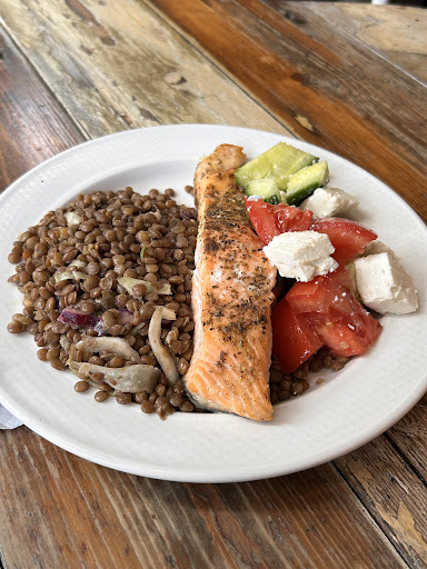 Read moreOn one of my 1 hour allowed walks of the day during Covid, I came across this cafe as I have been craving something indulgent for weeks. I originally was only going to get some cakes but decided to also get their lunch box, as it was close to mealtime. I got the grilled chicken box and salmon box. The grilled chicken box came with hummus, quinoa and salad - all so yummy! The salmon box came with brown rice, grilled veg and salad - also very good! Cakewise, the peanut stacked caramel cakey thing had a crunch layer and was exactly what I needed. Also got a brownie which was the gooey kind. Thank you very much for staying open and feeding the community during these turbulent times and we thoroughly enjoyed every...