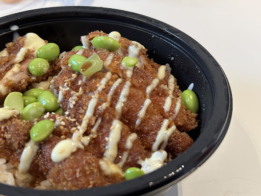 It's a little place, five seats inside, along the right hand wall. Three tables outside. Most of the customers who came In while I was there (and there were a lot!) Ordered to go. Service was quick, and the host was cheery and polite. The food was hot and your choices are bento of varied types, chicken, salmon and pork being some, as well as Japanese curry of the same varieties. Then you have your karaage and your gyoza and your sushi. A cute little Japanese restaurant with a great host and great menu. The place is scrupulously clean and has a bright and cheery feel to it. Be aware it gets very busy at lunch, but you're not waiting too long to be served.