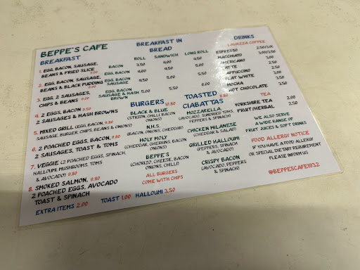 Read moreI'm quite surprised at the good reviews. I had a sausages, egg, beans and chipsa nd tea. The sausages were very charred on the outside, there were only a few beans, the egg was soft but the edges of the white were burnt and the chips were soggy. You have to ask for sauce and mustard. The mustard came in a large glass dish with a table spoon in it. It wouldn't have taken much effort to use a small container for single use. The cook was having a blazing row with someone on the phone in full earshot which probably explains the poor cooking and the time it took to arrive. I thought £11 was too much for this. Another customer had a word with him about something and he explained that the extract vents had been cleaned esterday and that's where all the bits came from. I didn't take any photos, probably should have done. I hope they take the criticism positively and improve...