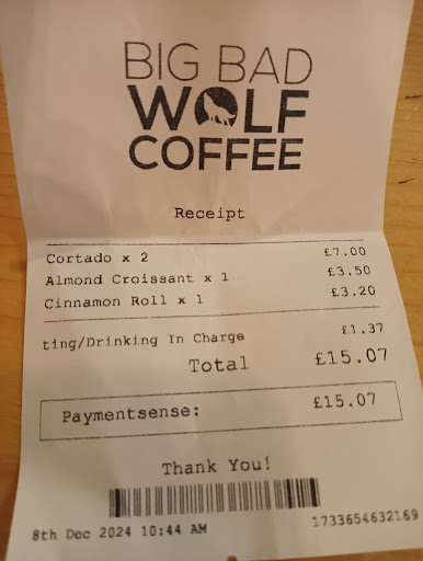 Ā Ā Ā Read moreI've been to quite a few cafes in Streatham as I work and study here and by far Big Bad Wolf Coffee has to be the best in the area! It's a nice and cosy spot with a nice vibe and conveniently open at all hours when you would need a coffee. From my 6am starts to afternoon study sessions, I am able to go there and be greeted with wonderful staff and importantly great coffee and food. White Chocolate Mochas to die for especially with a slice of Red Velvet Cake! Couldn't recommend...