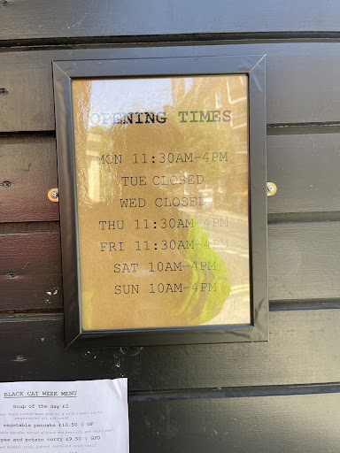 Read moreWhat a pleasure it is to be at the Black Cat Café :) I went to the Café with my two sisters-in-law and my little 5-month-old nephew for lunch, and we had a great time! Holly and the team are so kind and welcoming. They have created a lovely calm, relaxing and inclusive atmosphere. The food was totally delicious. I can personally recommend the burger. The chips were so good and I will think about them for a long time. My sisters-in-law had the pie and the dhal, and they loved their dishes too. There was also a great range of drinks available. I had a refreshing strawberry lemonade and would recommend this. Another great thing is the generous portion sizes. It made the dishes really good value for money, as Holly kindly provided recyclable containers for us and we were able to take our leftovers home and have them for lunch the next day. I would strongly recommend Black Cat Cafe to people of any age, for its pleasant and calm atmosphere, friendly vibes, delicious food and great drinks. Perfect place to catch up with friends and family or spend some quality alone time reading...