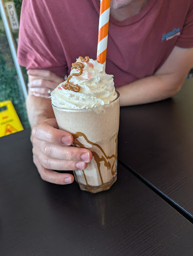 The cafe is small but really welcoming and has a lovely atmosphere. The menu is huge and has a great range of choices from breakfasts to milkshakes and lunch to waffles. We were only out for a quick snack but having seen the menu, we will return for something more substantial!